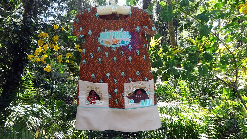 Use your Brother Dream Machine to celebrate Girl Power with machine embroidery designs from Moana, the new Disney movie. Girls of all ages will be inspired and empowered by the princess/heroine from this new Disney movie. Why not host a movie outing for your youngster and her friends. The little hostess will be wearing this Burda Kids pattern dress with machine embroidery designs from Brother’s ibroidery.com. Friends will be delighted with Moana character keychain favors to hang from their backpacks or purses. Moana affirms that girls can be strong and assertive.