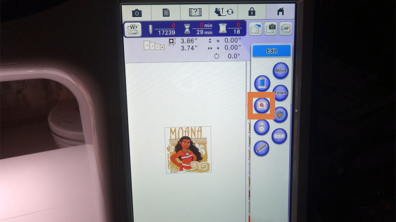 - Hoop Moana pocket piece with 2 layers of medium weight tearaway stabilizer and embroider.