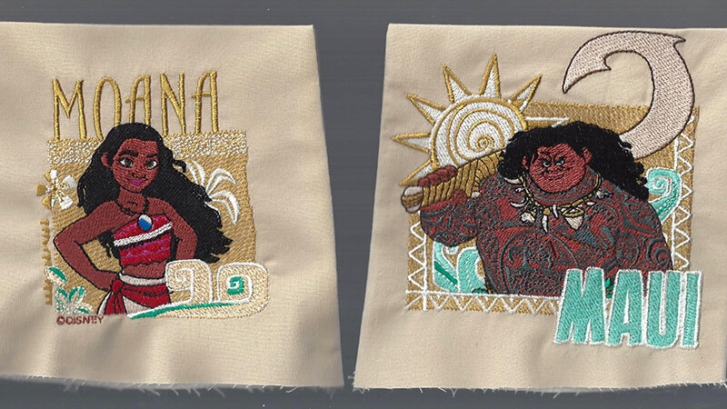 Moana was embroidered with medium weight and one layer of tearaway. Still, there was some puckering. Maui was embroidered with a second layer of tearaway with better results.