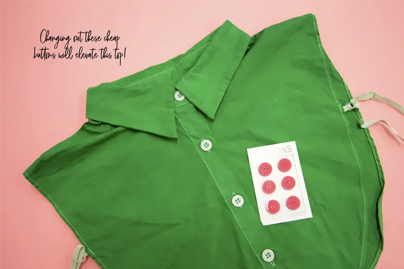 2. To elevate the look of the top, I also changed out the buttons. Cheap buttons are the bane of my existence.