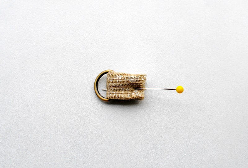 Cut 2” off the strip, loop it through the D-ring, and stitch it closed to secure it.