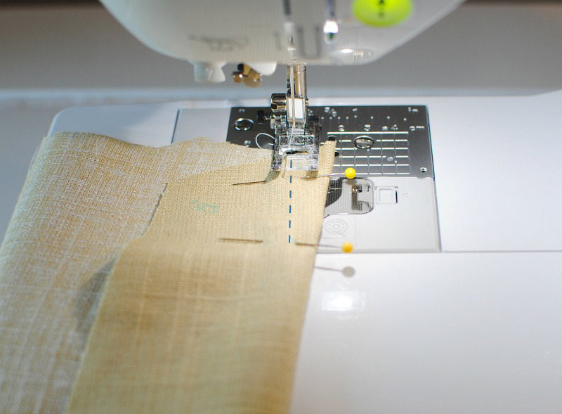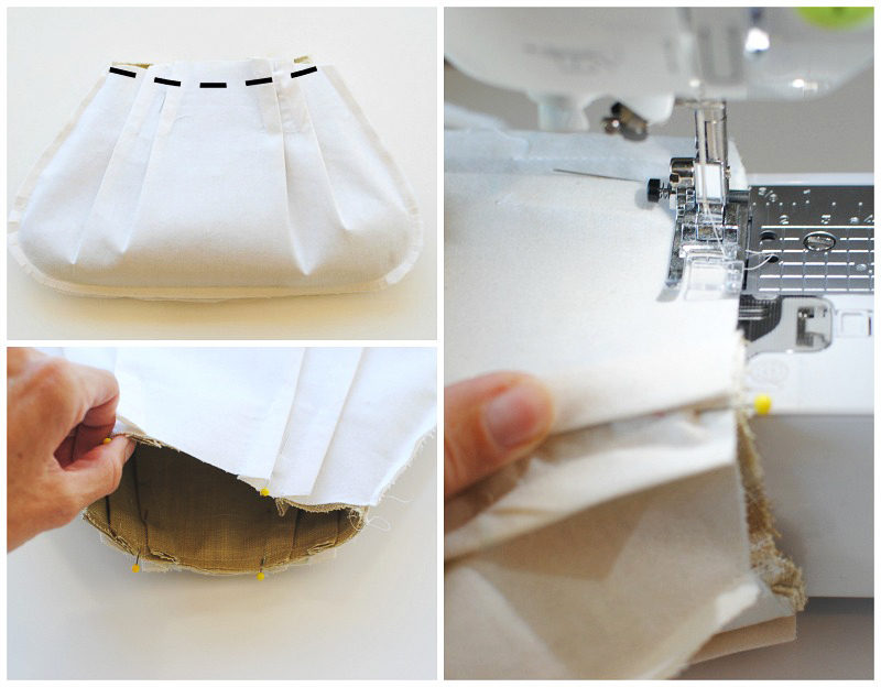 Fold the fabric along the pleat line, pin it, and sew. Backstitch at the end of the seam. Continue until you have four even pleats.