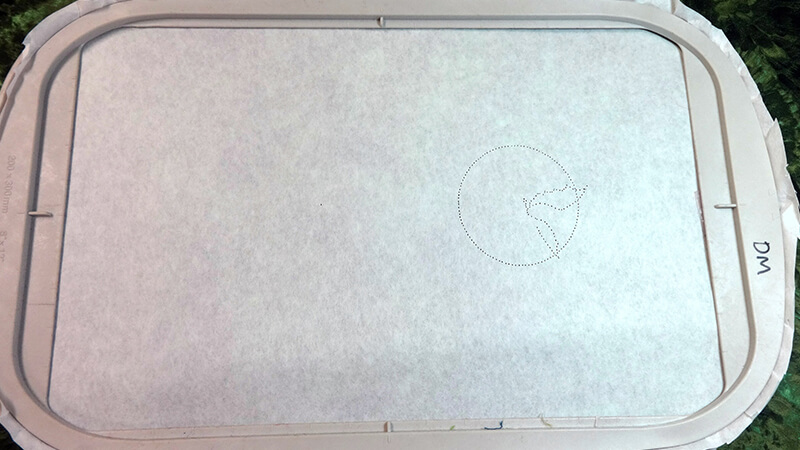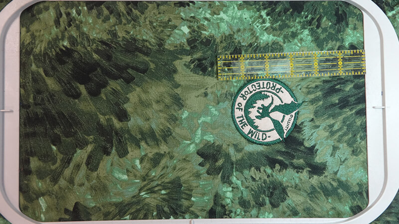 - Position the PTD04 - Protector of the Wild design centered 4” from inside top of hoop.