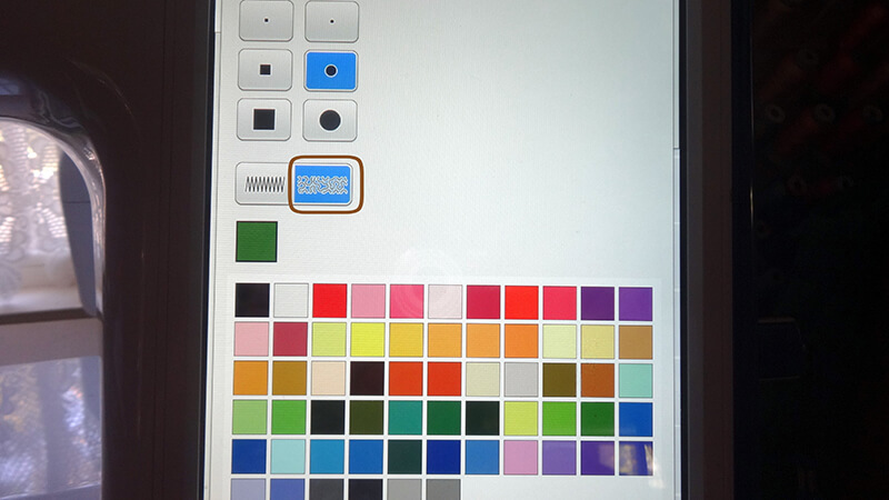 - Select the icon circled in black to apply the stipple stitches to the design.