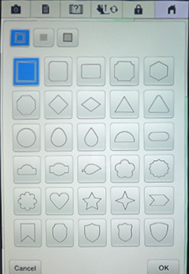 - Select the two squares in blue when this screen appears. The smaller square is the stamp type. The larger is the stamp shape. Press OK.