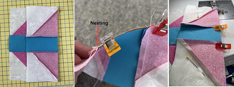 5. Press seams to the dark fabric and then trim off the corners.