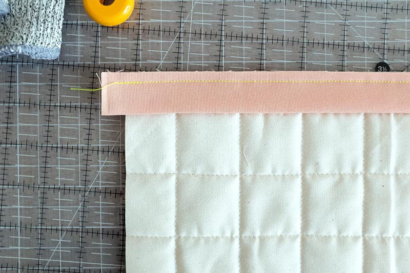 - Line up raw edges of Binding Strip with the Cushion Cover. Sew ¼" away from the raw edge.