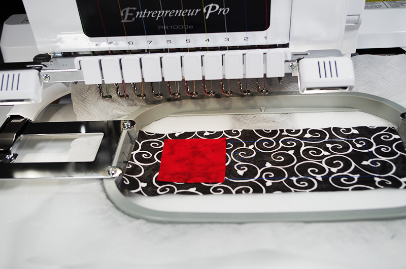 NOTE: Use the function to move the hoop out to see where to place the Appliqué fabric.