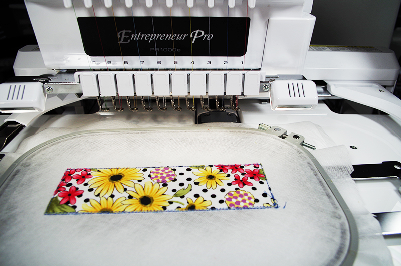 - Stitch out Color Change 1 – Placement stitches for Bookmarker Fabric. The PR1000e will stop prior to Color Change 2.