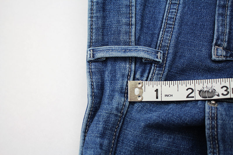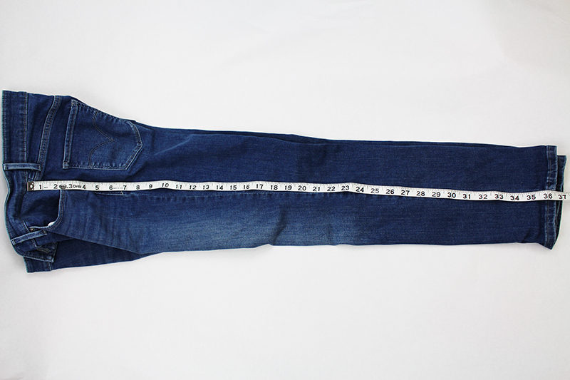 - Measure the outside of the jean leg from the bottom edge of the waistband to the hem.