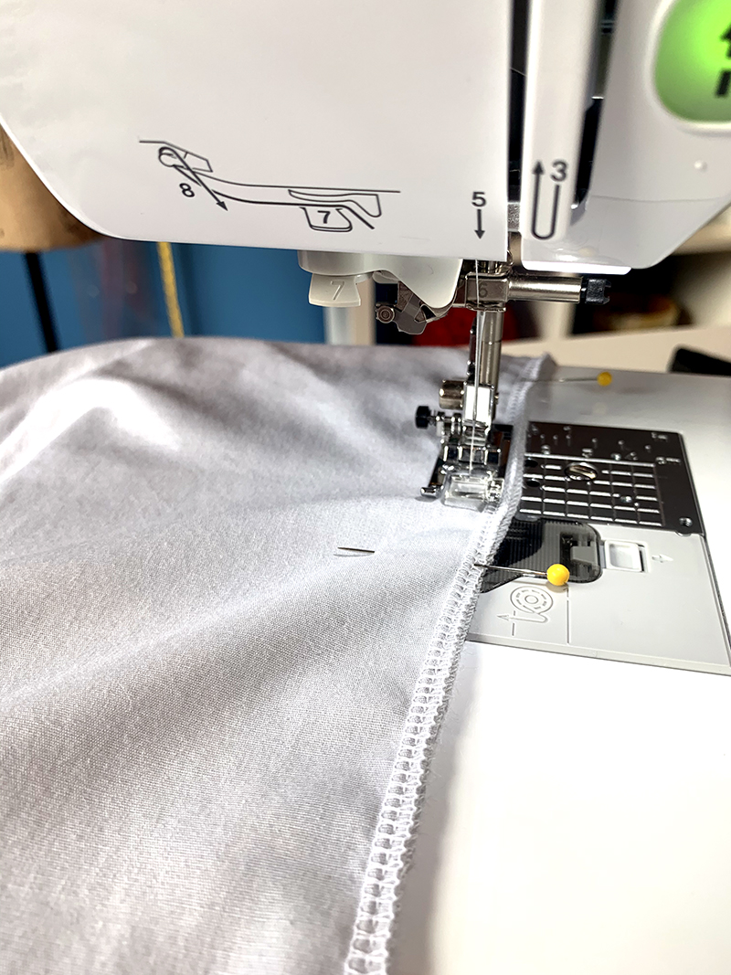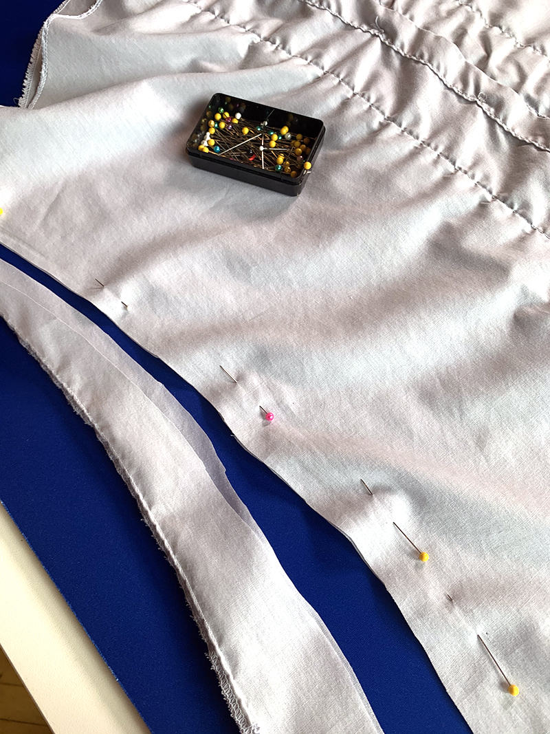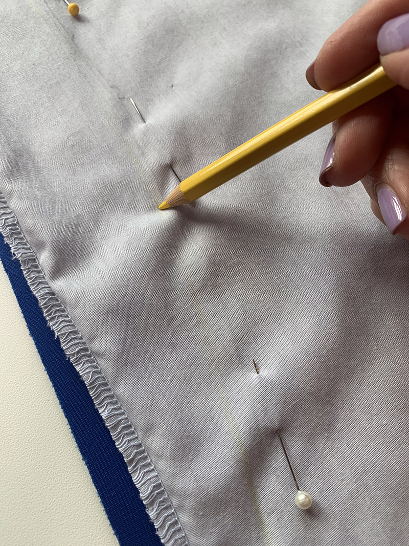 Remove the pins, lay the fabric flat and reposition the pins on the new side seam line. Once the shirt is flat, even out the line with your fabric marker because it’s your guide for sewing.