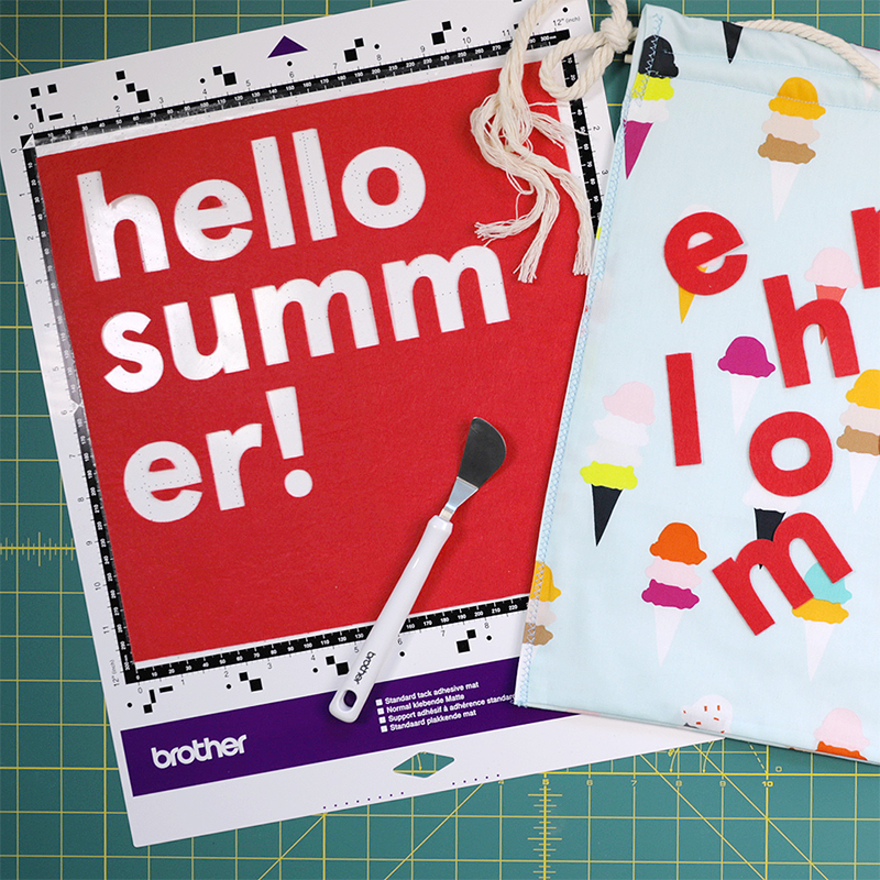 Download the SummerBanner.fcm file to your Brother ScanNCut DX. Use the Brother Iron-On Fabric Appliqué Contact Sheets to prepare the stiff felt, adhering the sheets to the felt as directed.
