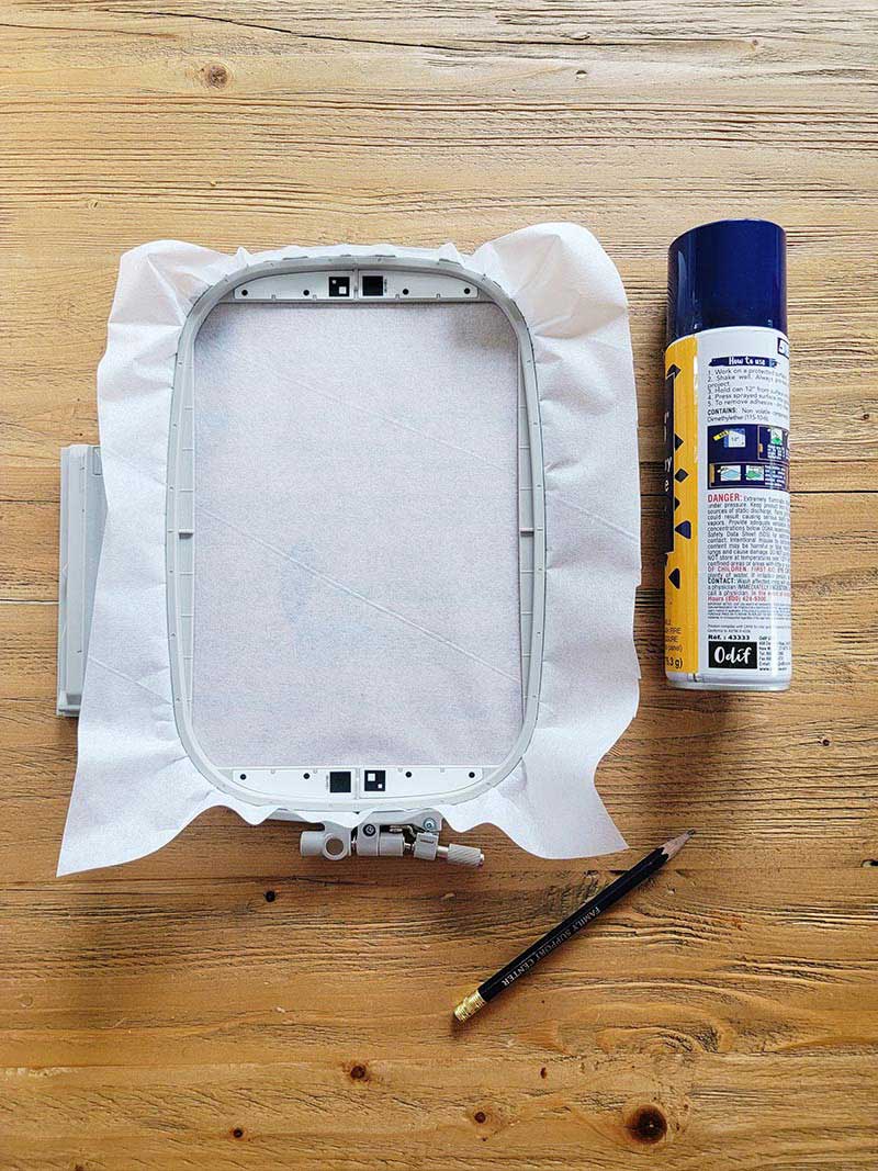 1. Measure and cut a piece of tear-away stabilizer, making sure that it is at least 1 inch larger than the hoop on all sides.