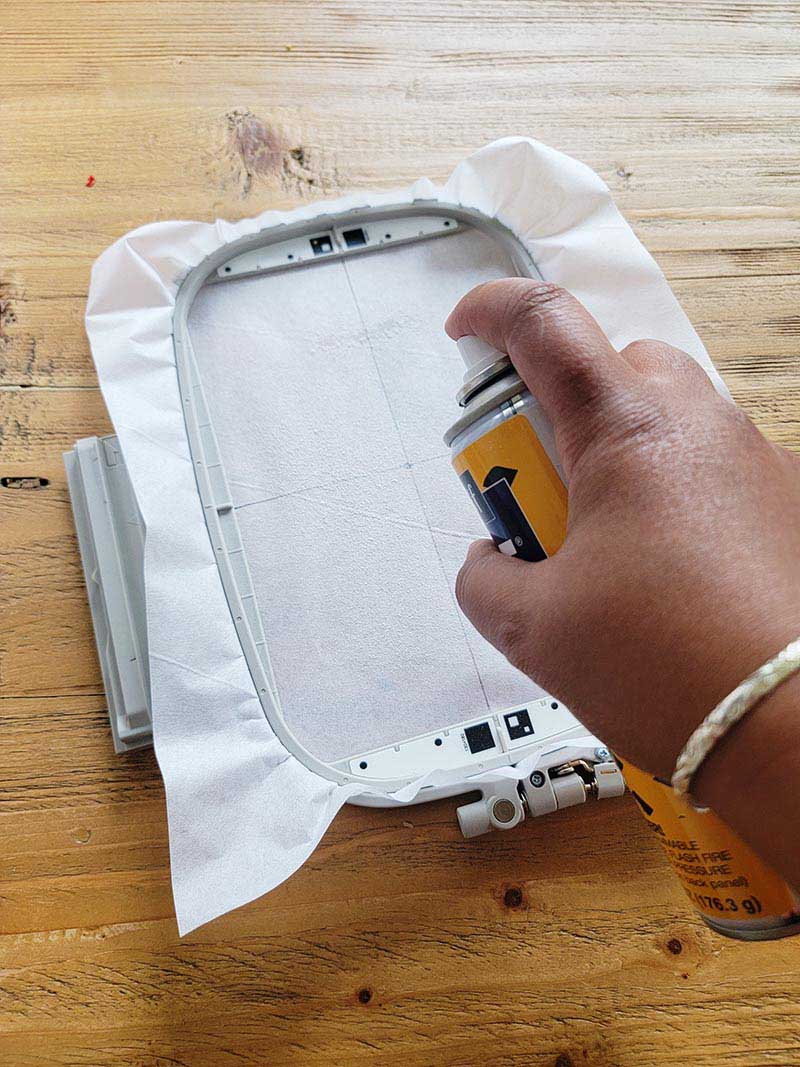 2. Take the stabilizer that you’ve previously cut and hoop it into your 5x7 embroidery hoop.