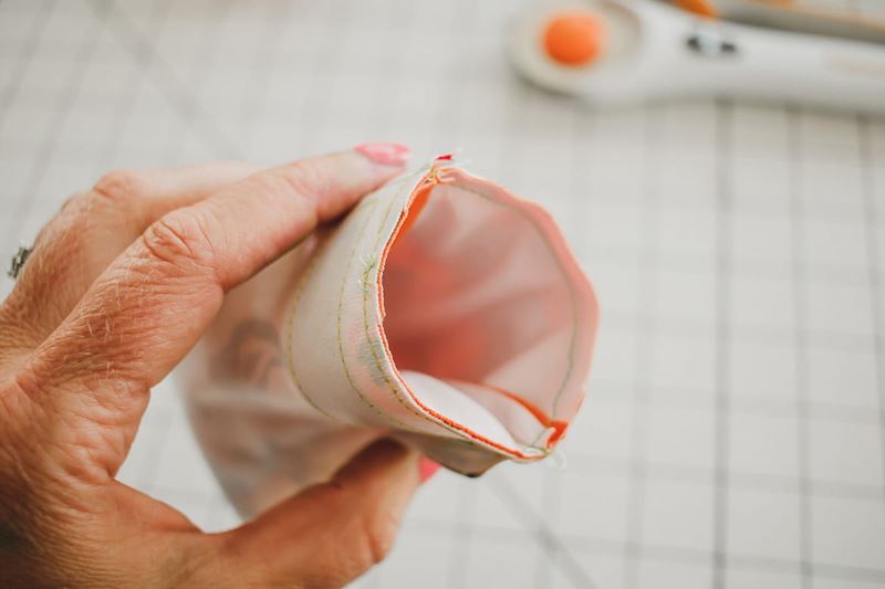 11. Turn the outer layer right side out and leave the lining as is.