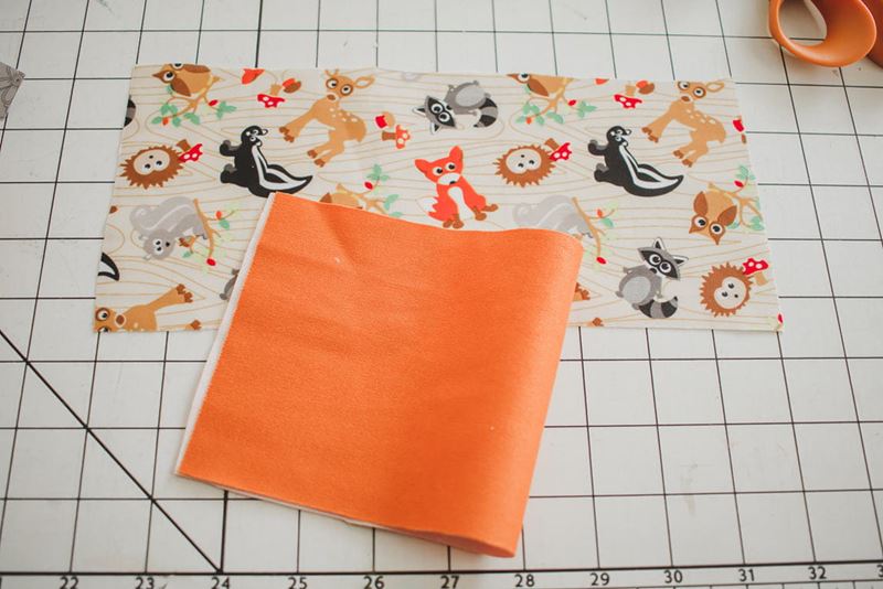 1. Cut the rectangle to desired size. You will be folding the short ends together as sewn, but can make the snack bag any size. I usually make them just one serving size. The rectangle here is 4.5 x 10”. Cut and outer layer and a lining layer for each pack you want to sew.