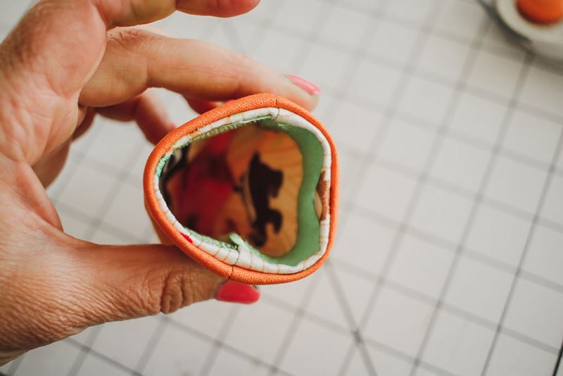 14. Turn the snack bag through the opening in the liner. Pull all the way open and then sew closed the turning hole before pushing the lining inside the bag.