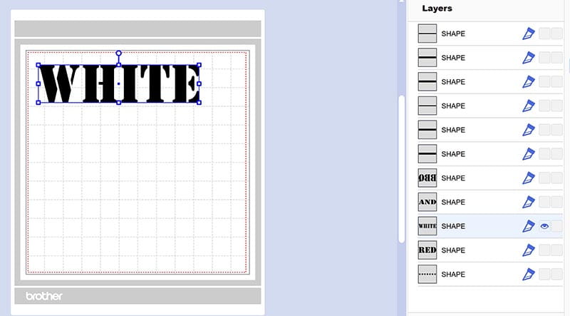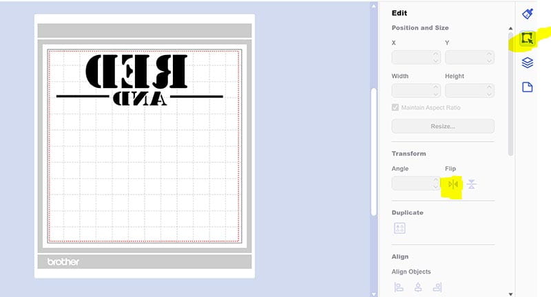 Start by only showing the parts you want to cut from red. Here’s what I chose. Make sure to mirror the image before cutting. I also move the design to save vinyl before I cut.