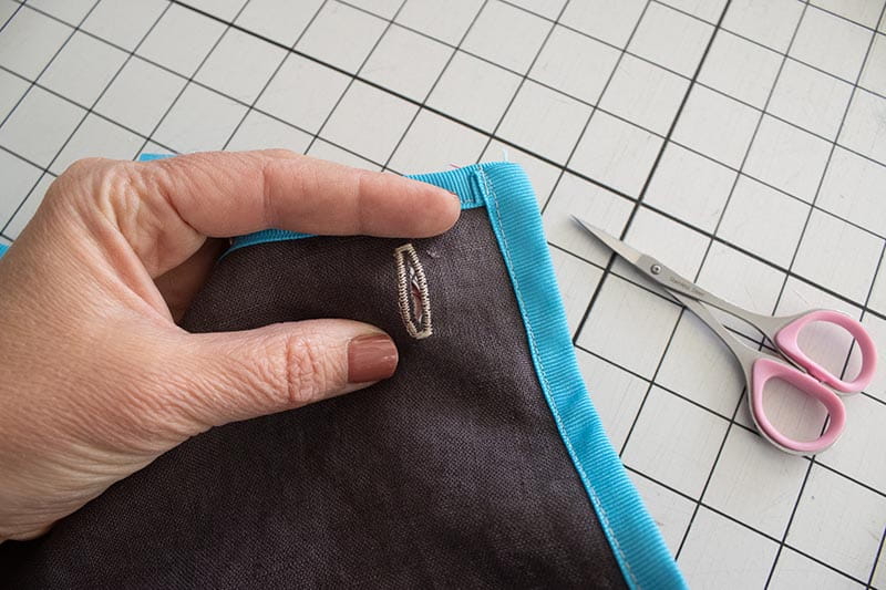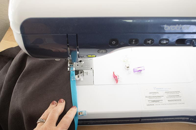 Sew in place using a straight stitch on your sewing machine. You could also use a zig-zag stitch if desired.