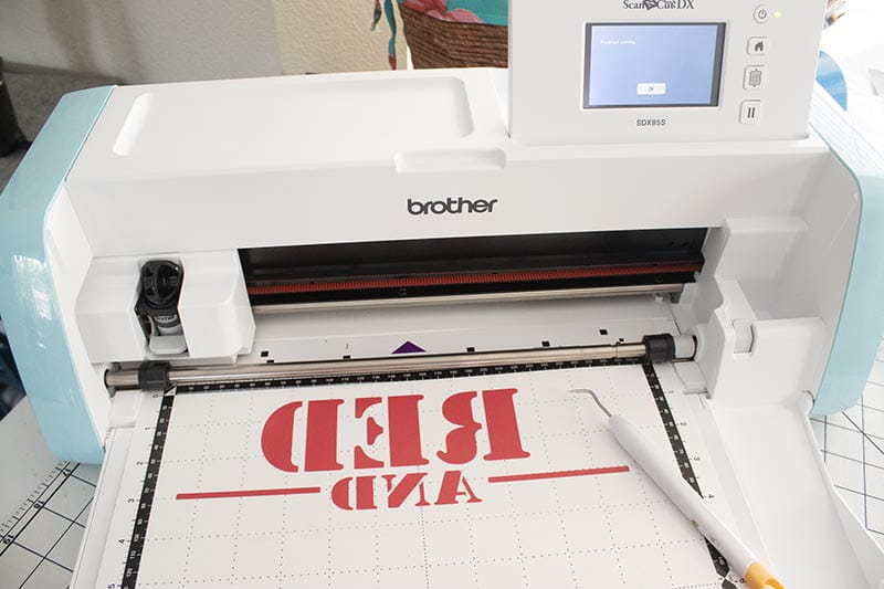 Cut the red vinyl with part of the design, then weed out the extra vinyl.