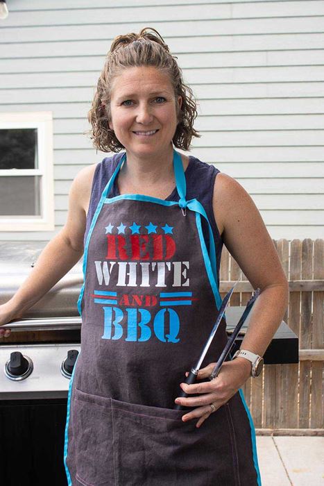 It’s been such a warm spring that I’m in full summer mode already. That means lots of grilling and eating outside on the deck so we can enjoy this gorgeous weather. My new grilling apron is the perfect way to keep neat and clean while I make a delicious dinner. Since I like to keep all my grilling tools handy, I even added apron pockets for a look that’s fun and practical! This pattern is sized so it works for all genders.