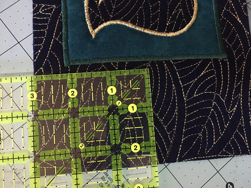 Tip: Use the embroidered rectangle as a guide to keep the appliquéd numeral straight within the cutting lines.
