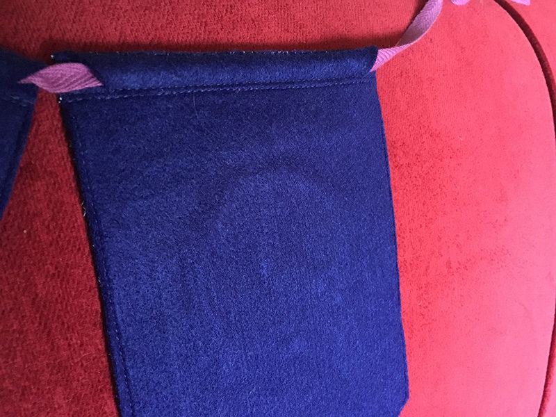 9. Fuse a rectangle of plain felt to the wrong side of the pennant. Place the top edge of the pennant 3/4" below the top edge of the backing. Trim the sides and lower edge of the backing to match the pennant fabric.
