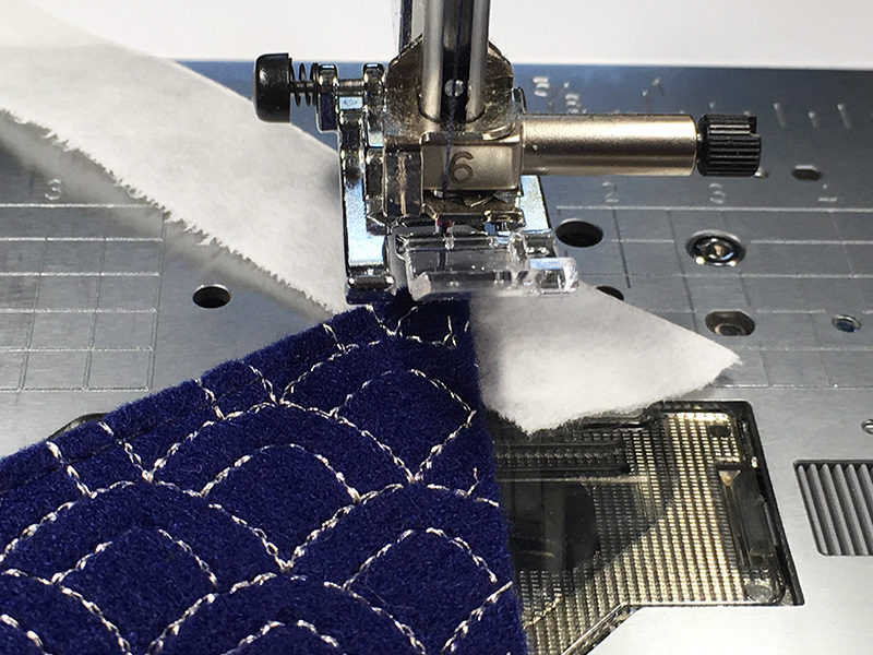 Tip: Use a scrap of tear-away stabilizer as a handle at narrow corners. It will make edgestitching the points much easier, and tears away afterward.