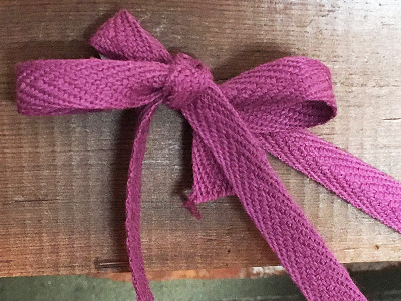 15. Cut the remaining twill tape in half. Tie one piece in a bow around the knot at one end of the hanging cord. Repeat to garnish the other end of the cord with the remaining twill tape.