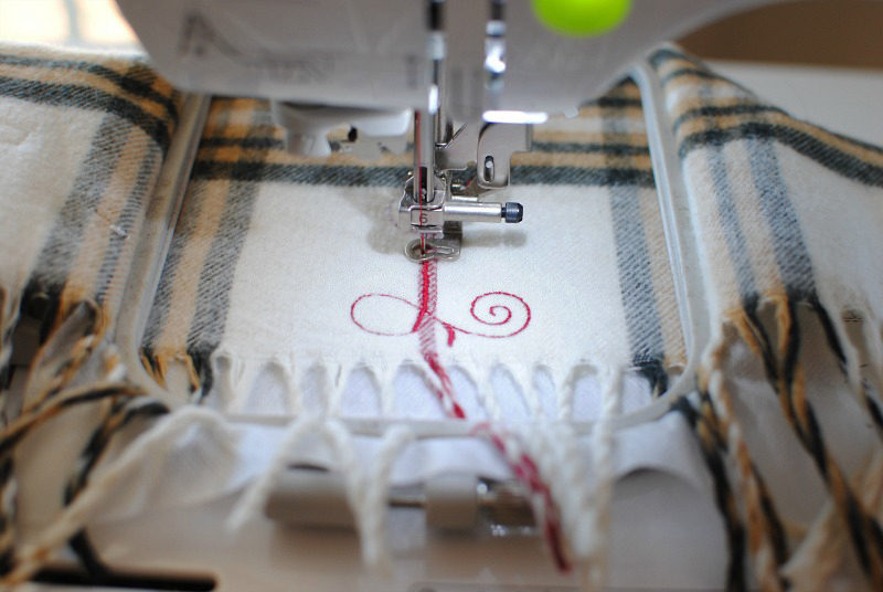 January is here so I am kicking off my winter sewing with some accessories to keep me warm during these chilly months. If I’m out and about, I’m usually wearing some sort of hat and scarf so I thought it would be fun to share a couple tutorials for these. I’m really loving the beret trend right now, it’s a classic and timeless hat that is easy to sew. Another way to add a custom detail to your look is a monogrammed scarf. If I’ve learned one thing from living in the South it’s that you can’t have enough monogrammed items. Get the details below on how to make your own.