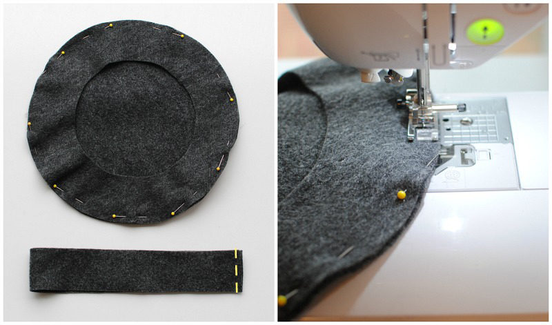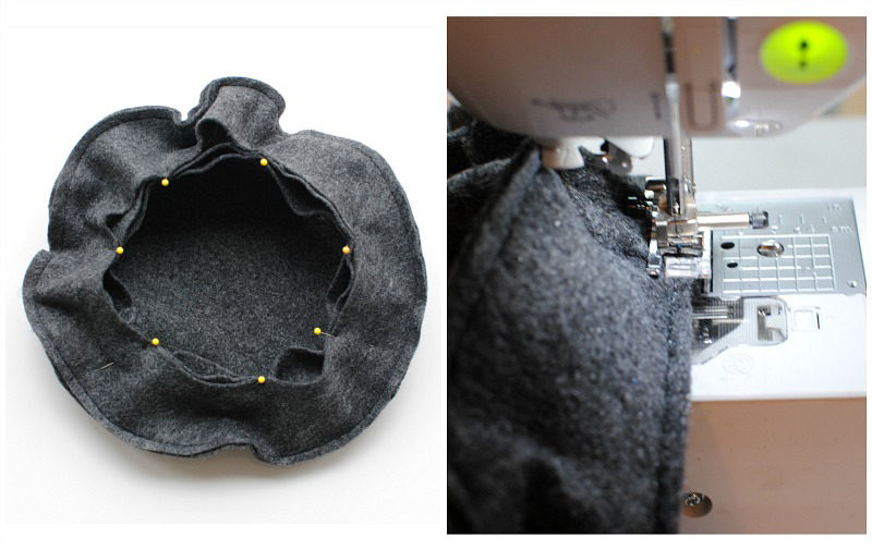 - Pin the folded band right sides facing along the hat brim making sure it fits evenly around.