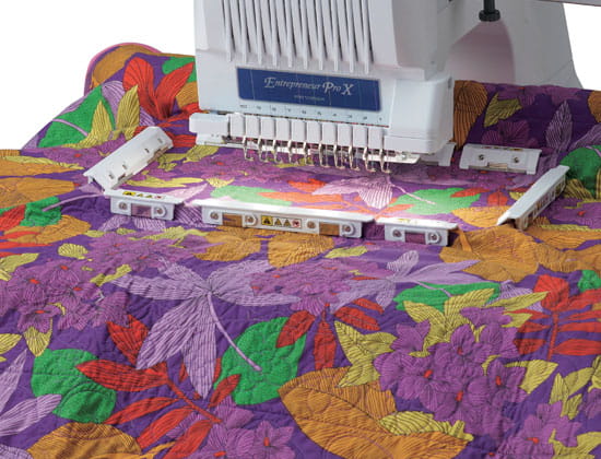 Perfect for large projects, including quilts and jacket backs. Includes four sizes of embroidery frames: 14" x 8", 5" x 7", 4" x 4", and 2" x 1.5". The machine will automatically detect the size of the hoop needed.