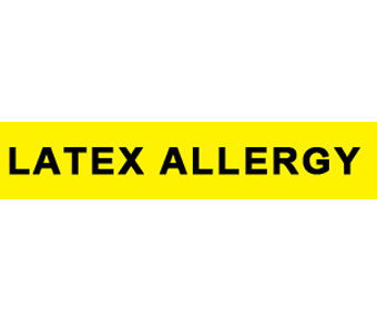 Healthcare Label - durable, laminated lab label designed to withstand harsh environments such as oils, chemicals, abrasion, etc. This 9mm, 360 dpi label which informs of latex allergy.