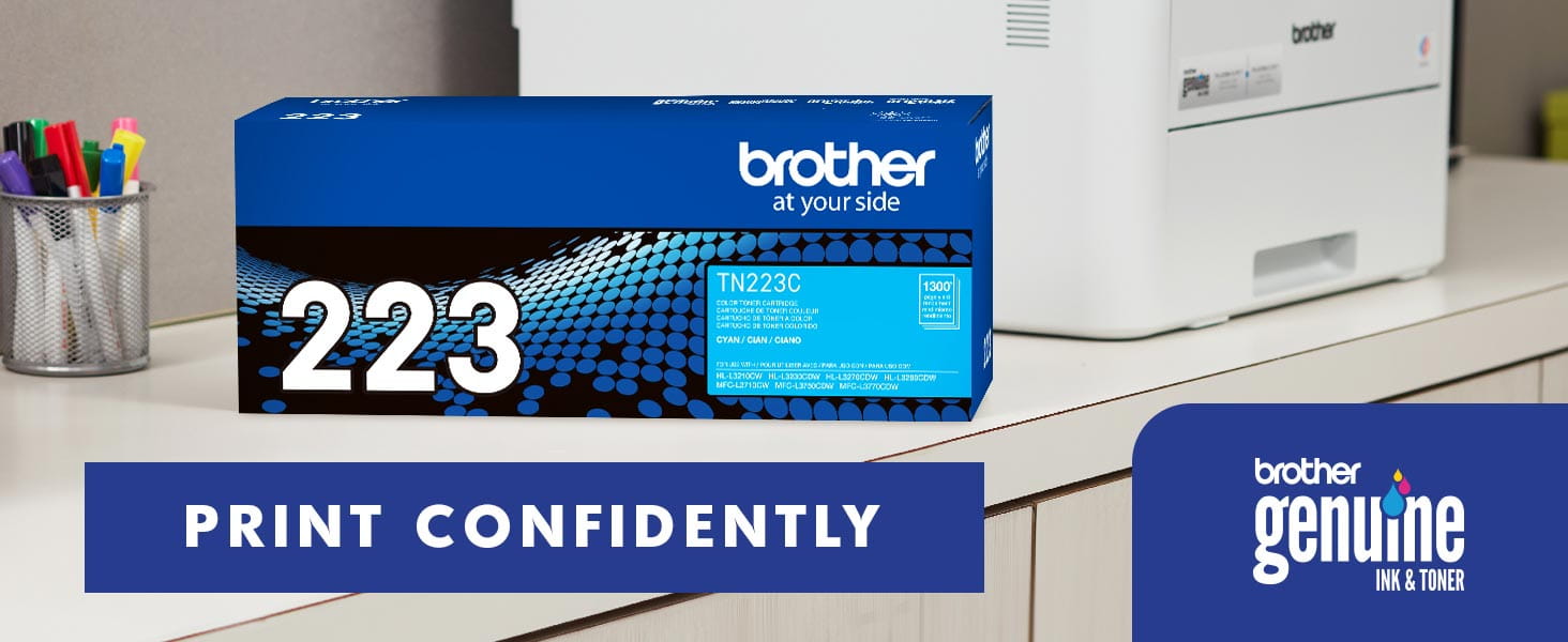 - Brother Genuine TN-223C Standard Yield Cyan Toner Cartridge.