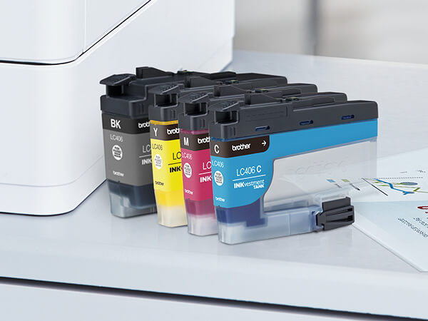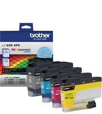 - Brother Genuine LC406 4PK Standard Yield INKvestment Tank 4-Pack Ink Cartridges – includes 1 cartridge each of Black, Cyan, Magenta and Yellow.