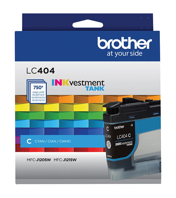 | Replacement Cartridges‡ | LC404BK page yield is 750 pages; LC404 C/M/Y page yield is 750 pages per cartridge. Approximate page yields in accordance with ISO 24711. For more page yield information see www.brother.com/pageyield. |