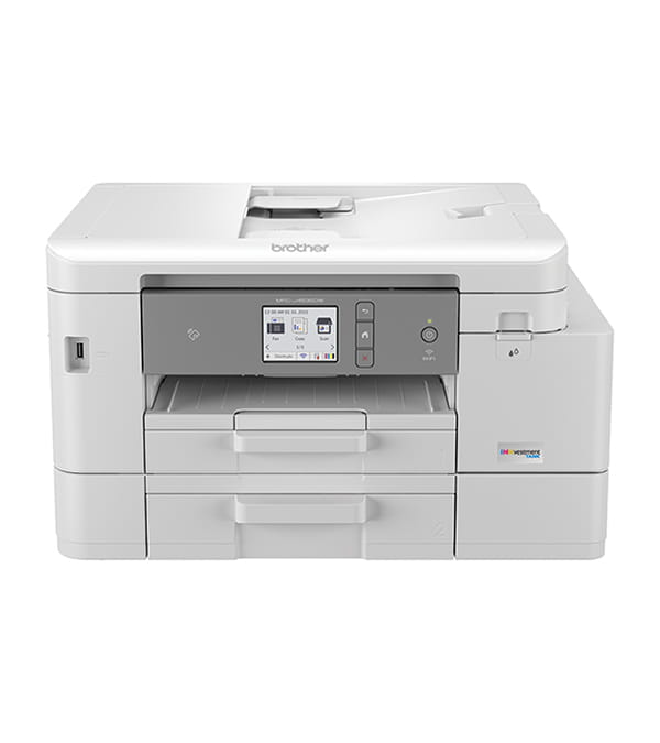 You can INK BIG with the Brother MFC-J5855DW INKvestment color inkjet all-in-one printer, loaded with up to 1 year of ink in-box‡. Powered by Brother MAXIDRIVE Inkjet Technology, this dynamic printer delivers super sharp images, text, and graphics with print speeds up to 30 pages per minute‡, black and color. This multifunction Brother INKvestment printer is versatile enough to handle almost any home or work project need, from school reports to business proposals. Robust Triple Layer Security helps safeguard sensitive documents and securely connect to the device and network while printing. Productivity and efficiency combine as you connect and print wired, wirelessly‡, or even on the go with the Brother Mobile Connect App‡. Built to last and designed for exceptional ease of use right out of the box.