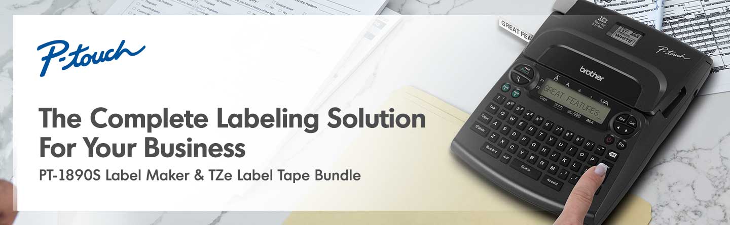 - From medical records, client folders and office equipment to manufacturing environments, school and government records, the P-touch Label Maker & TZe Tape Bundle PT1890S is a complete labeling solution.