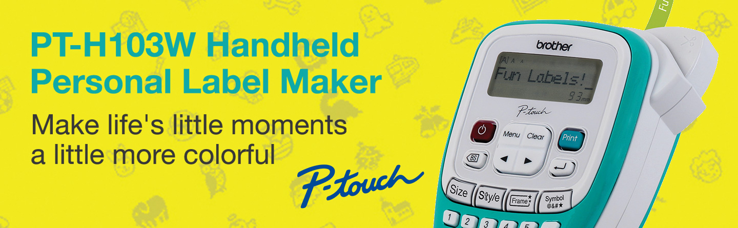 - From middle school projects to journal covers, the P-touch PT-H103W Personal Handheld Label Maker can help you keep track of what’s what and make life’s little moments a little more, colorful.