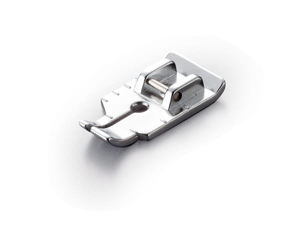 For quilt and patchwork piecing with 1/4" or 1/8" seam allowances. Using the center needle, straight stitch position, the right front edge of this foot provides a guide for creating even ¼-inch seams for quilts, doll clothes and heirloom sewing projects. When using the left side of the foot as a guide, an 1/8-inch seam is created.