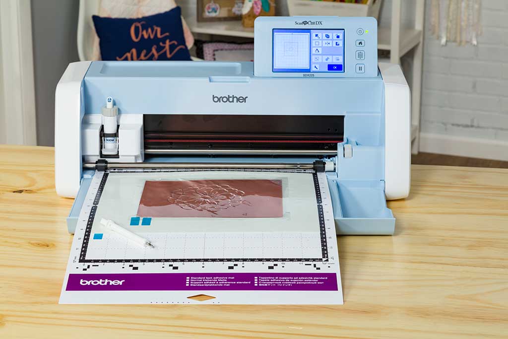 Now, the only series of home and hobby cutting machine with a built-in scanner, has essentially everything else you need to create stunning home crafting projects. Like Brother's revolutionary Auto-Blade sensor technology. This wonderful, time-saving feature automatically detects material thickness to cut precise custom and built-in patterns. It even has a setting for making half cuts so you can cut the top layer of vinyl without cutting the backing.
