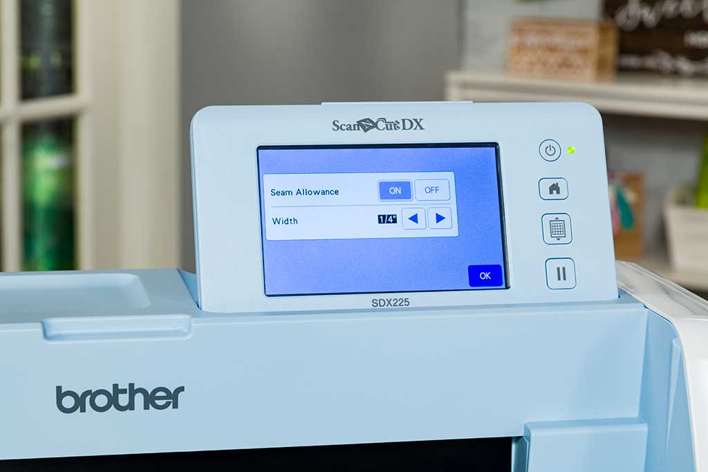 - Seam Allowance and Sewing Guidelines Have you ever struggled with piecing together your fabric when working on various sewing and quilting projects? ScanNCut DX gives you the ability to add a seam allowance in ¼” increments to assist you in piecing together fabric pieces for your quilts, clothing and more. But wait, it gets better! You can even utilize the erasable pens (air soluble and water soluble) to create sewing guidelines on your designs to assure virtually perfect placement of your stitches.