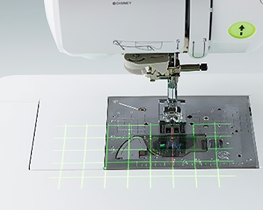 - Guideline Marker Line and Guideline Marker Grid - Project a guideline marker line and marker grid on your fabric, offering you the option of single, double, angled, or grid lines to light your path with precision. Great for creating multiple rows of stitches, parallel stitching, pin tucks, hems, curtain rod pockets, decorative stitches, cross hatch quilting, or smocking.