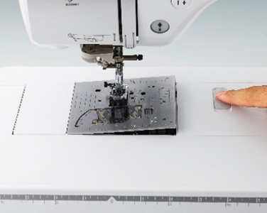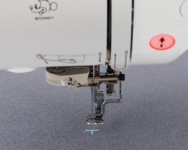 - Built-in embroidery pointer - Displaying a ‘T’ mark in three different colors, the pointer can show the center of your embroidery design as well as the needle drop position on the fabric.