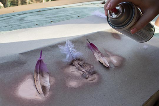 Spray paint the bottom half of feathers with the gold spray paint and tie to the ends of a few strands of trim to add to the design.
