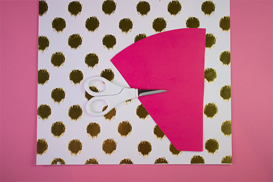 Take a piece of thick cardstock and cut into the shape of long triangle with a rounded bottom. Use a fun, shiny piece of cardstock for a more fun, party look.