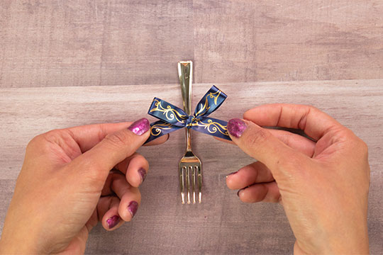 Clip the clothespin to the fork. Repeat for each photo hanger. Fit the photo in the fork teeth and clothespin on the twine.