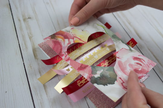 When it's time to send out the invitations, set the tone for an extravagant weekend with a classy DIY invitation. This decorative invitation can be made using some basic crafting supplies and the Brother P-touch Embellish ribbon and tape printer.