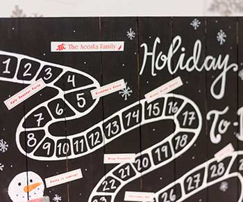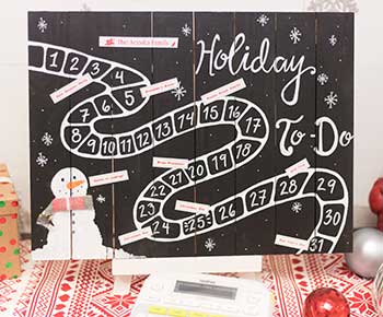 The holidays can be a busy and stressful time of year. Keep track of all of your activities with this handy holiday to-do board.