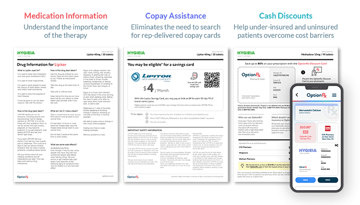 Output personalized affordability options designed to help patients overcome prescription cost obstacles. Since cost is the top reason patients abandon medication at a pharmacy, this information is critical in helping patients obtain and remain on necessary medication. Activate patient engagement with printed and digital materials delivered directly into the hands of patients who are insured, uninsured, or underinsured.